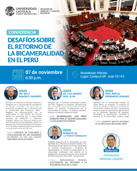 CONFERENCIA: DESAFÍOS SOBRE EL RETORNO DE LA BICAMERALIDAD EN EL PERÚ ➡️ INSCRIPCIONES: HAGA CLIC AQUI