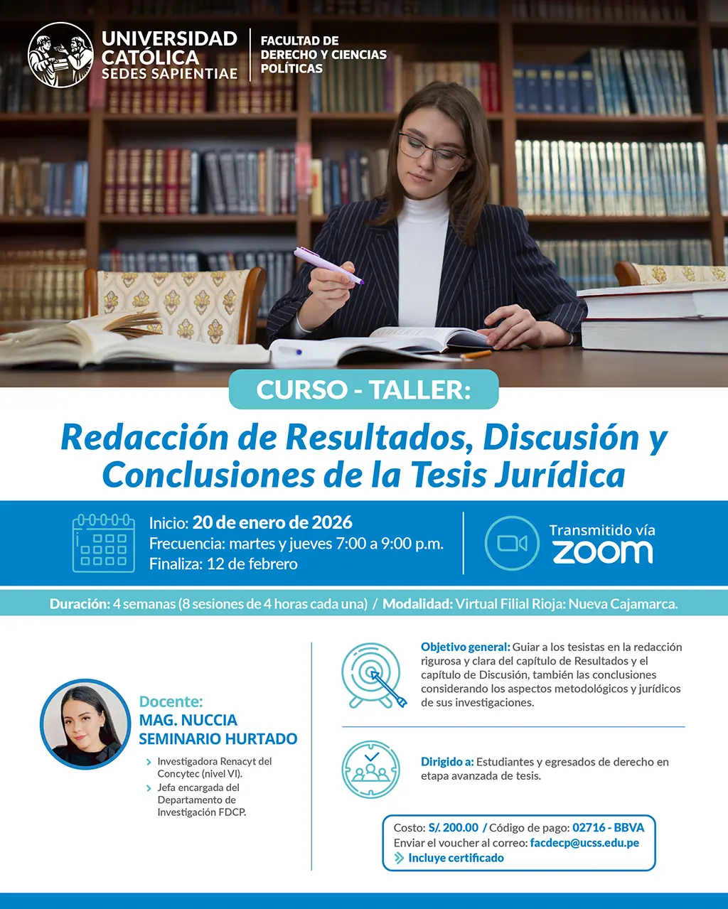 CURSO-TALLER: REDACCIÓN DE RESULTADOS, DISCUSIÓN Y CONCLUSIONES DE LA TESIS JURÍDICA