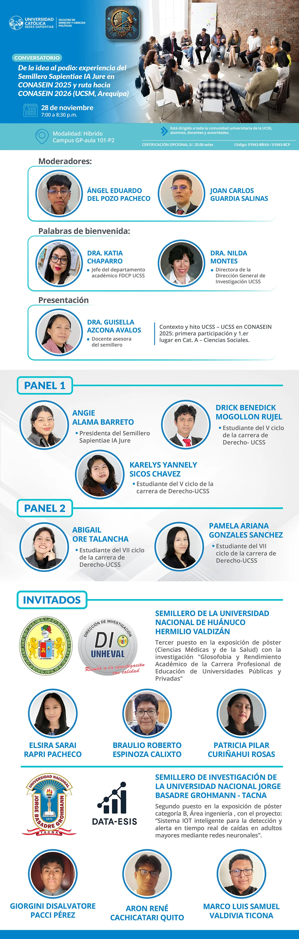CONVERSATORIO “DE LA IDEA AL PODIO: EXPERIENCIA DEL SEMILLERO SAPIENTIAE IA JURE EN CONASEIN 2025 Y RUTA HACIA CONASEIN 2026 (UCSM, AREQUIPA)" Ir al formulario de inscripción