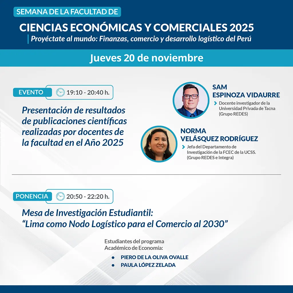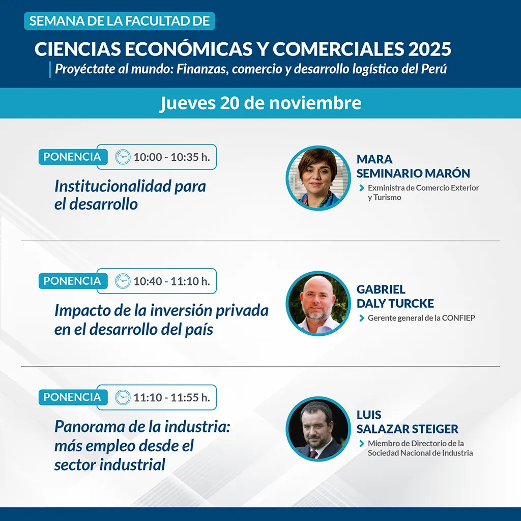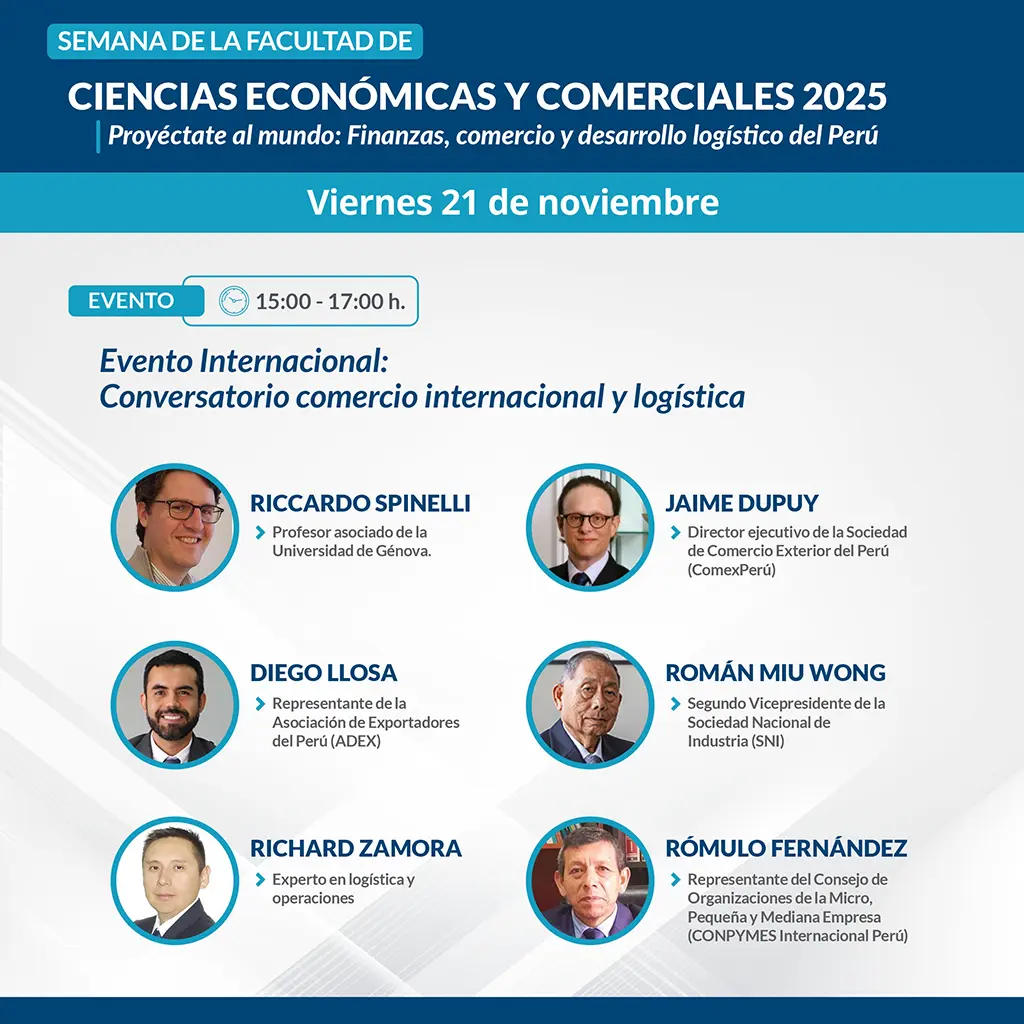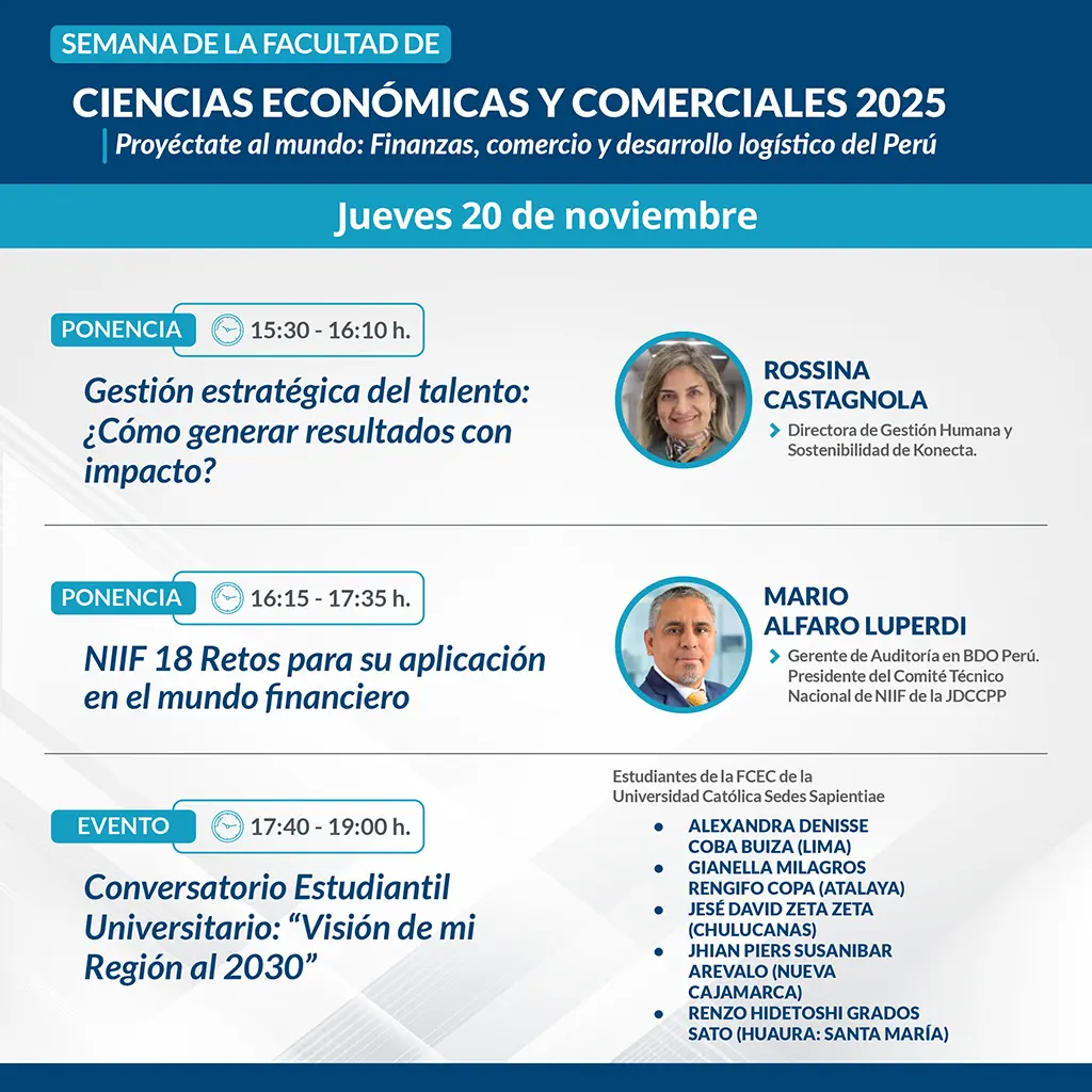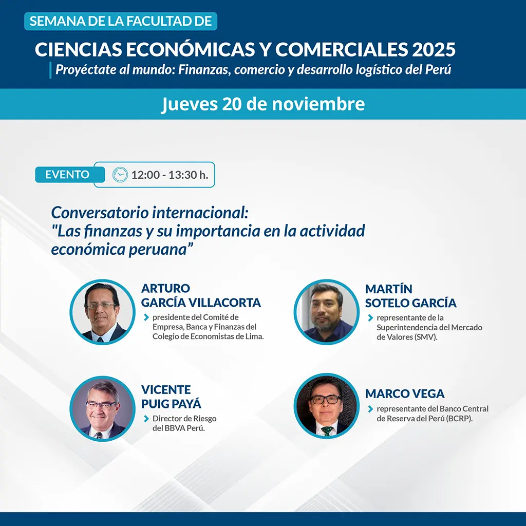 PROGRAMA DE LA SEMANA DE LA FCEC 2025 Regístrate y participa en los eventos que te brinda la Facultad de Ciencias Económicas y Comerciales. Todos los campos con el asterisco ('*') son obligatorios. Apellidos* Nombres* Dni o código de estudiante* Email* Celular* Sede de procedencia Lima Huacho Chulucanas Atalaya Nueva Cajamarca Otra ¿A qué facultad perteneces?* Seleccione una facultad.. Facultad de Ciencias Económicas y Comerciales – FCEC Facultad de Ciencias de la Educación y Humanidades – FCEH Facultad de Ciencias de la Salud – FCS Facultad de Ingeniería – FI Facultad de Ingeniería Agraria – FIA Facultad de Derecho y Ciencias Políticas – FDCP Otro ¿Cómo participará en las actividades? Presencial Virtual ¿Desea recibir constancia de participación? Sí, por todos los eventos que se desarrollen durante la Semana FCEC Sí, solo por un evento específico No necesito constancia Fecha* Seleccione una fecha... 20/11/2025 21/11/2025 Seleccione el evento al que desea participar* Seleccione el evento al que desea participar... untitled element Enviar Se realizó con éxito su registro Volver al formulario Please turn on javascript to submit your data. Thank you!