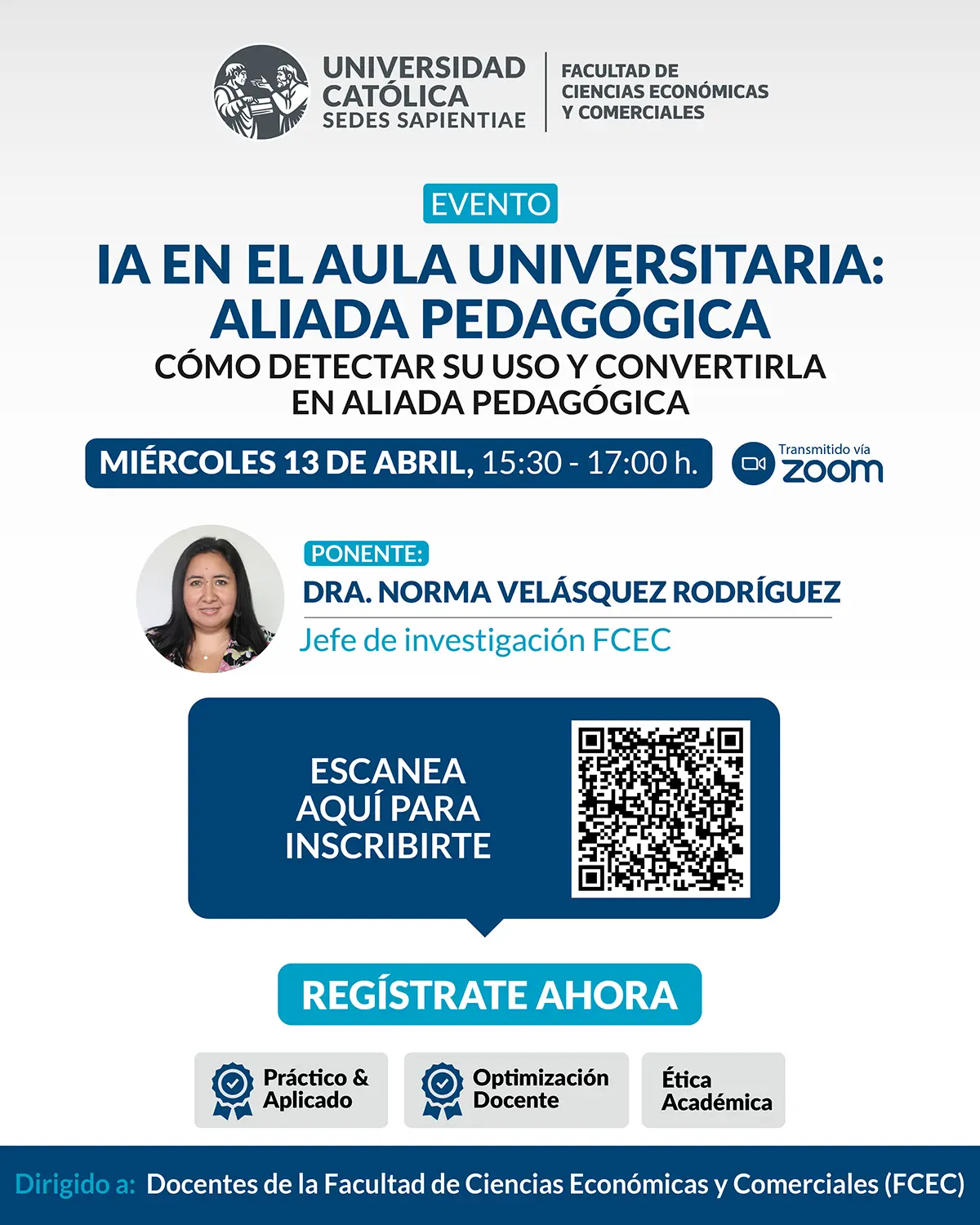 IA EN EL AULA UNIVERSITARIA: CÓMO DETECTAR SU USO Y CONVERTIRLA EN ALIADA Ir al formulario de inscripción LLENA ESTE FORMULARIO PARA PARTICIPAR Regístrate y participa en los eventos que te brinda la Facultad de Ciencias Económicas y Comerciales - FCEC. Todos los campos con el asterisco ('*') son obligatorios. * El evento es para publico en general. Apellido Paterno* Apellido Materno* Nombres* Correo* Celular* Lugar de Residencia* Verificar Usuario Enviar Se realizó con éxito su registro, verifique su mensaje en su bandeja de entrada o en la sección de Spam. Volver al formulario Please turn on javascript to submit your data. Thank you!