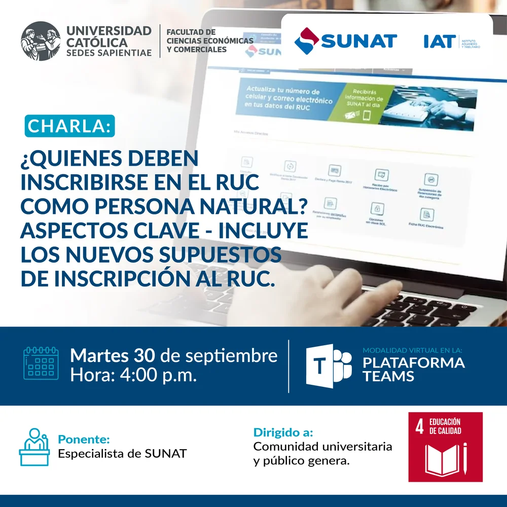 CHARLA: ¿QUIENES DEBEN INSCRIBIRSE EN EL RUC COMO PERSONA NATURAL? ASPECTOS CLAVE - INCLUYE LOS NUEVOS SUPUESTOS DE INSCRIPCIÓN AL RUC Ir al formulario de inscripción