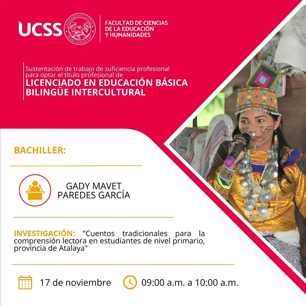 SUSTENTACIÓN DE TESIS: CUENTOS TRADICIONALES PARA LA COMPRENSIÓN LECTORA EN ESTUDIANTES DE NIVEL PRIMARIO, PROVINCIA DE ATALAYA ENLACE ZOOM: https://zoom.us/j/92557120832