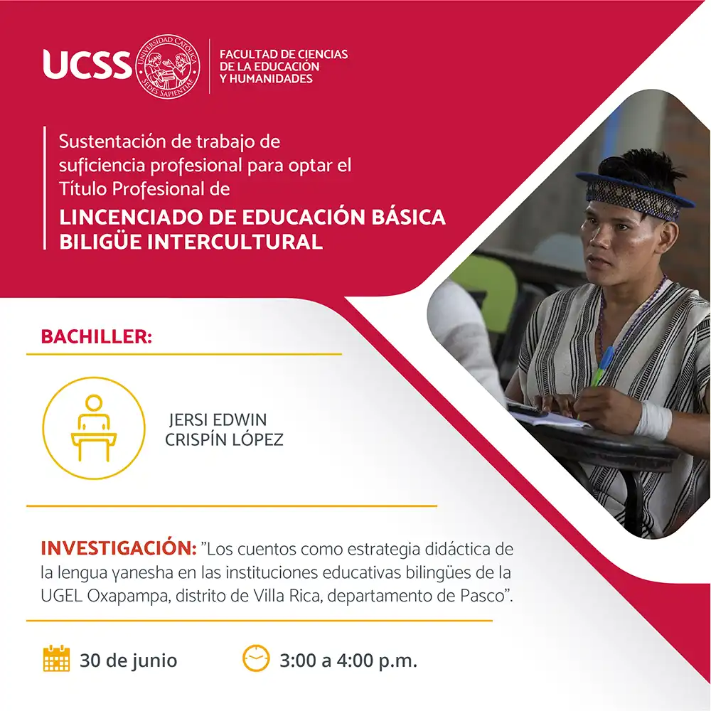SUSTENTACIÓN DE TESIS: LOS CUENTOS COMO ESTRATEGIA DIDÁCTICA DE LA LENGUA YANESHA EN LAS INSTITUCIONES EDUCATIVAS BILINGÜES DE LA UGEL OXAPAMPA, DISTRITO DE VILLA RICA, DEPARTAMENTO DE PASCO ENLACE ZOOM: https://zoom.us/j/92609559415ID de reunión: 92609559415