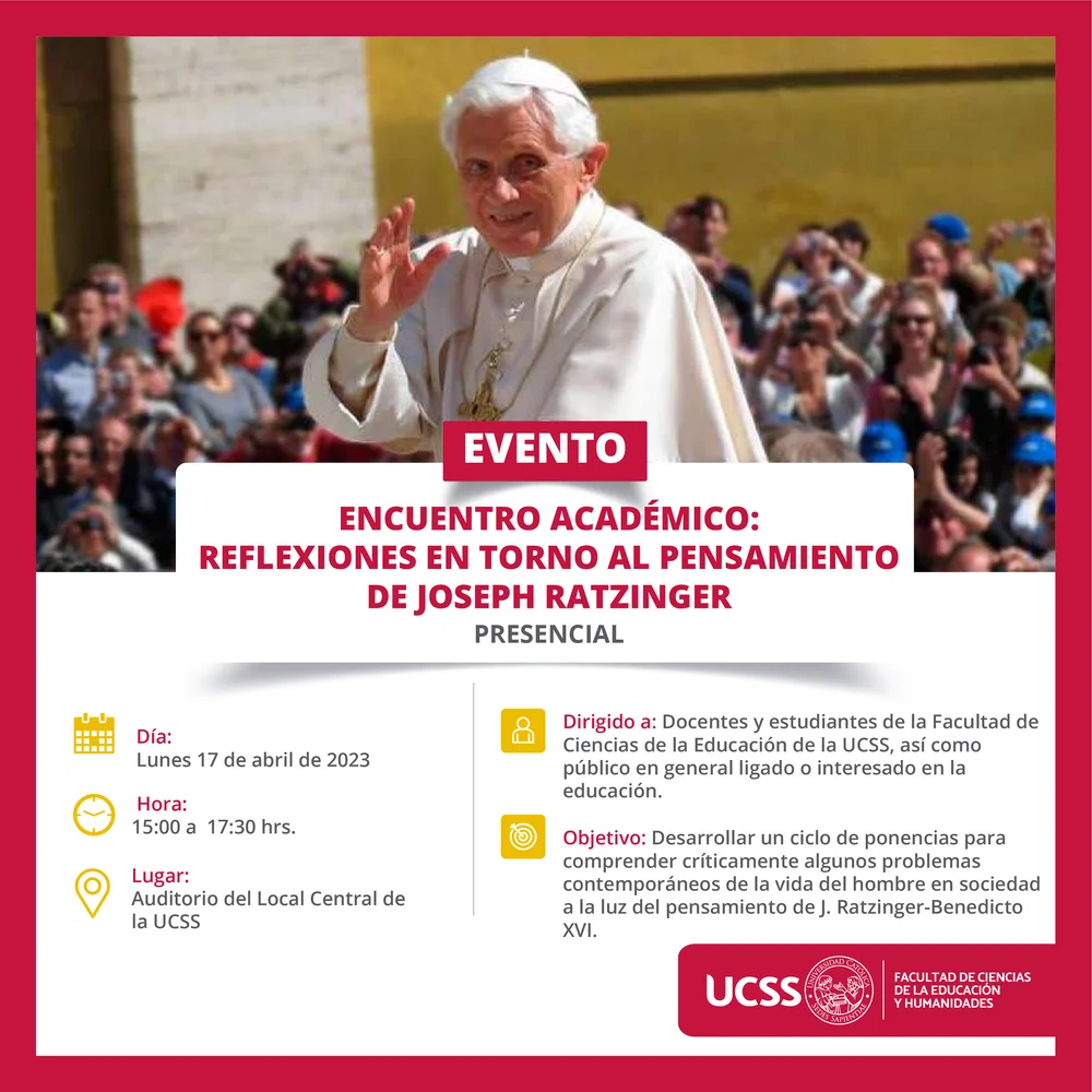 ENCUENTRO ACADÉMICO: REFLEXIONES EN TORNO AL PENSAMIENTO DE JOSEPH RATZINGER Ir al formulario de inscripción