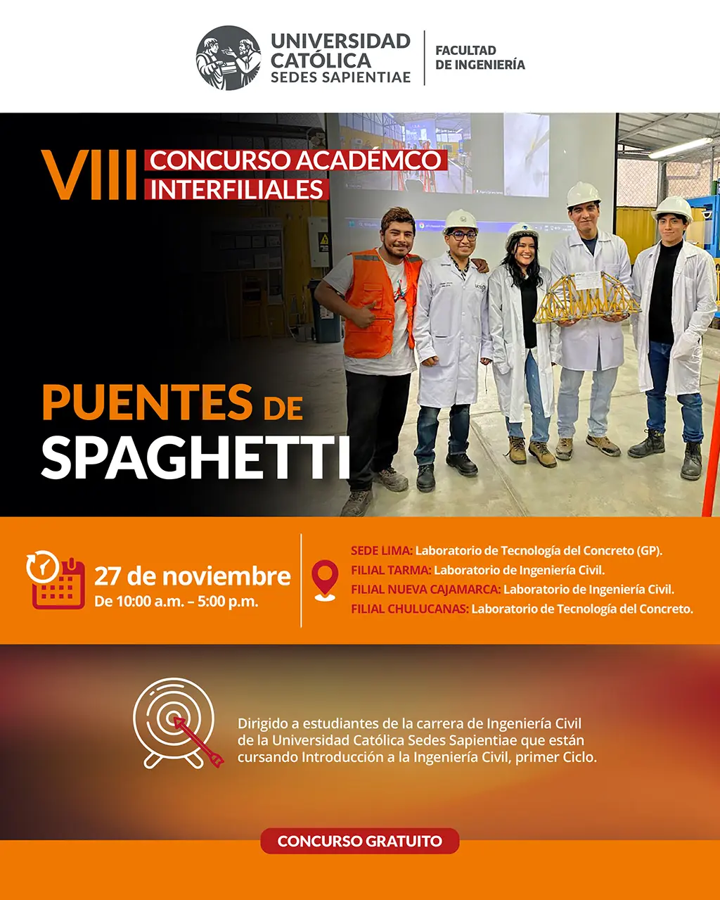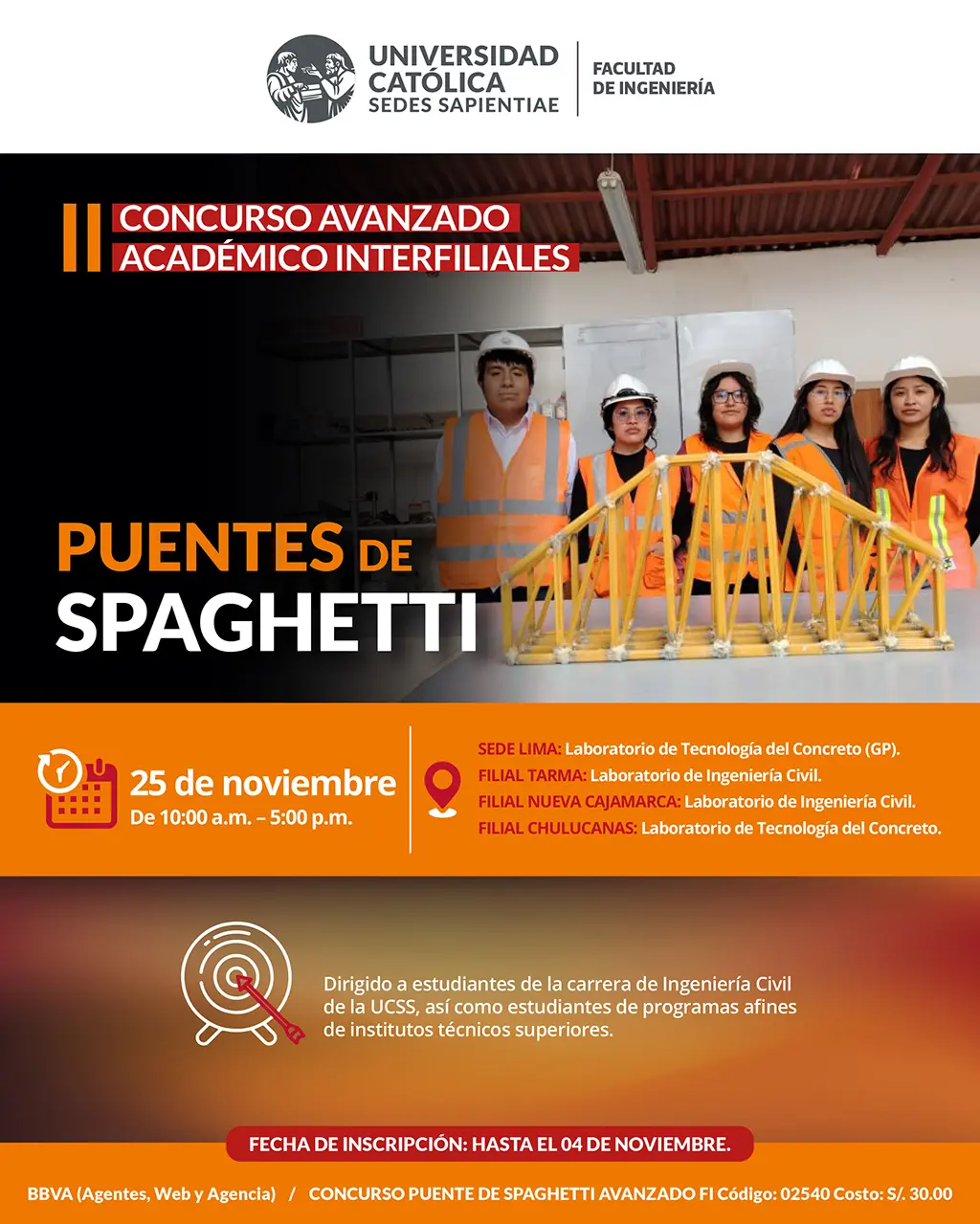 CONCURSOS: PUENTE DE SPAGHETTI - CACHIMBOS, PUENTE DE SPAGHETTI - AVANZADO, Y ROTURA DE PROBETAS ➡️ INSCRIPCIONES: HAGA CLIC AQUI ➡️ INSCRIPCIONES: HAGA CLIC AQUI Leer más: CONCURSOS: PUENTE DE SPAGHETTI - CACHIMBOS, PUENTE DE SPAGHETTI - AVANZADO, Y ROTURA DE PROBETAS