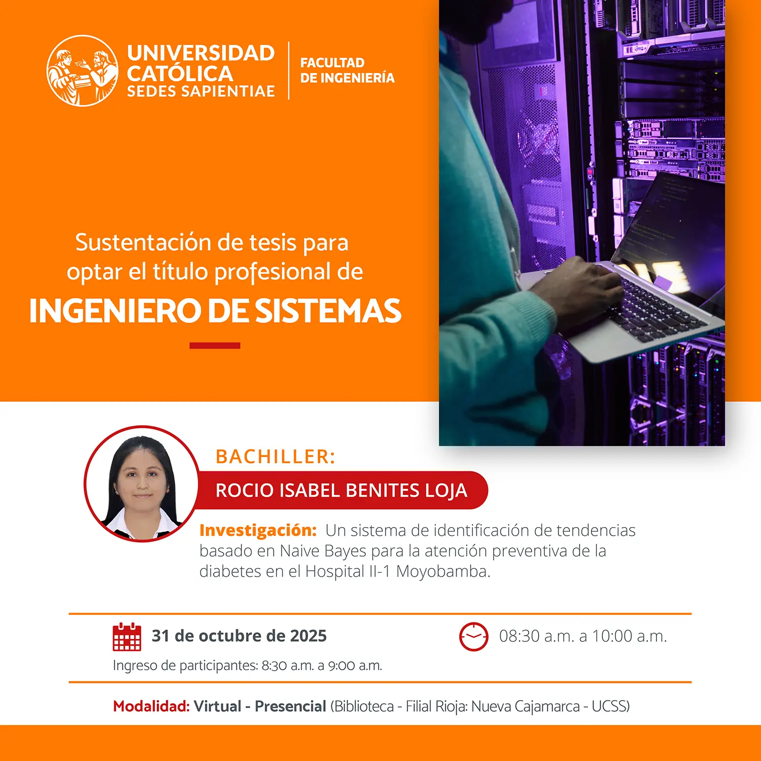 SUSTENTACIÓN DE TESIS PARA OPTAR EL TÍTULO PROFESIONAL DE INGENIERO DE SISTEMAS ENLACE ZOOM: https://zoom.us/j/98440327687?pwd=4N8h4uNnzgi1t66l7A8h2ciDanb1pX.1
