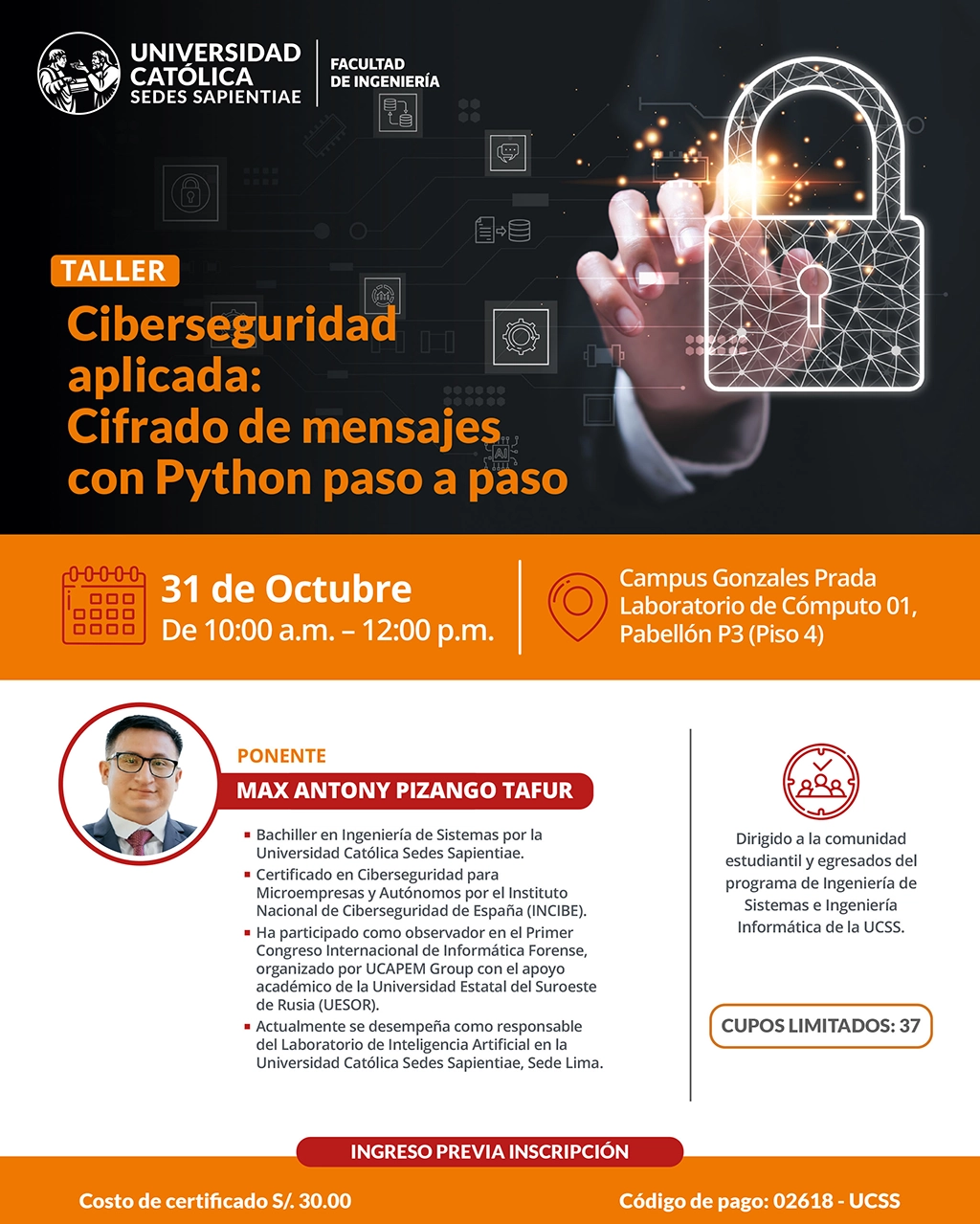 TALLER DE CIBERSEGURIDAD APLICADA: CIFRADO DE MENSAJES PYTHON PASO A PASO INSCRIPCIONES: HAGA CLIC AQUI