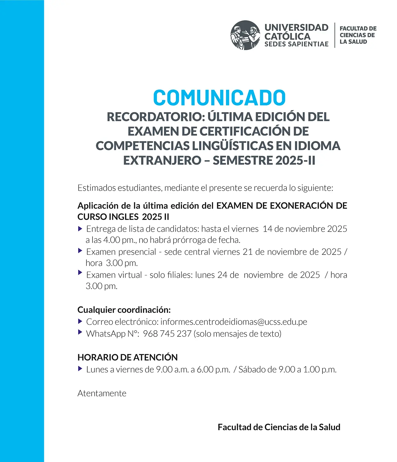 EXAMEN DE CERTIFICACIÓN DE COMPETENCIAS LINGUISTICAS DE IDIOMA EXTRANJERO REVISAR CALENDARIO DE EVALUACION DE EXONERACION 2025: VER PDF