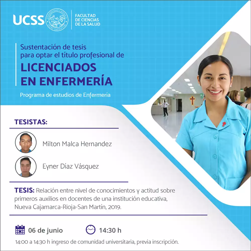 RELACIÓN ENTRE NIVEL DE CONOCIMIENTOS Y ACTITUD SOBRE PRIMEROS AUXILIOS EN DOCENTES DE UNA INSTITUCIÓN EDUCATIVA, NUEVA CAJAMARCA-RIOJA-SAN MARTÍN, 2019. Ir al formulario de inscripción >