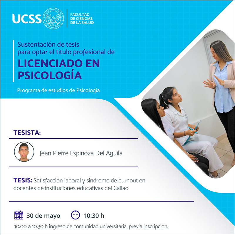 SATISFACCIÓN LABORAL Y SINDROME DE BURNOUT EN DOCENTES DE INSTITUCIONES EDUCATIVAS DEL CALLAO Ir al formulario de inscripción
