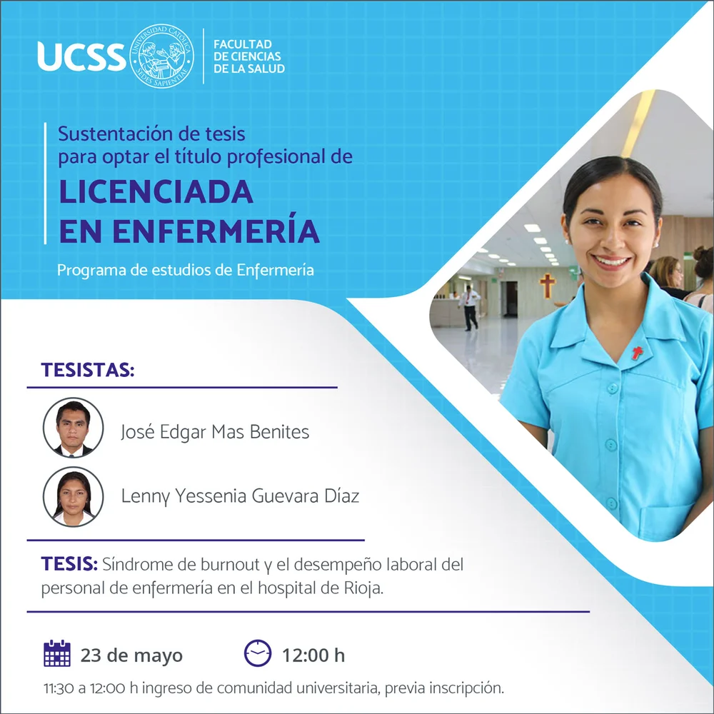 SUSTENTACIÓN DE TESIS: SÍNDROME DE BURNOUT Y EL DESEMPEÑO LABORAL DEL PERSONAL DE ENFERMERÍA EN EL HOSPITAL DE RIOJA ENLACE ZOOM: INGRESAR AQUÍ